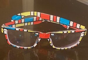 Last time, I tried picking out something my jazzy friends would have liked: a checkerboard of primary colors. After measuring and entering all the numbers, I got a warning. “Your PD (aka pupillary distance) is smaller than minimum PD of the frame, but we can process with an extra charge.” $10 more, it turned out, for some unspecified equipment adjustment. Not much, I thought, and I went along with it, only to discover when the glasses arrived, that my nose felt the heft of two pairs, not one.